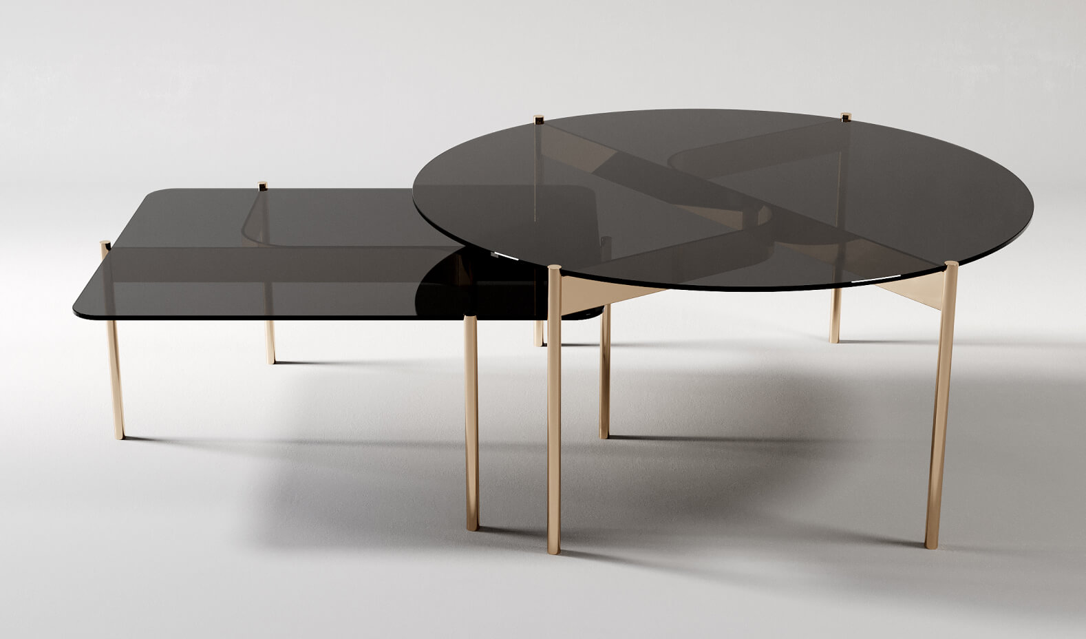 Воплощение лёгкости и конструктивной точности в современном исполнении. Эта модель объединяет стеклянные поверхности и тонкие опоры, формируя многослойную композицию, которая работает с отражением, светом и глубиной пространства.