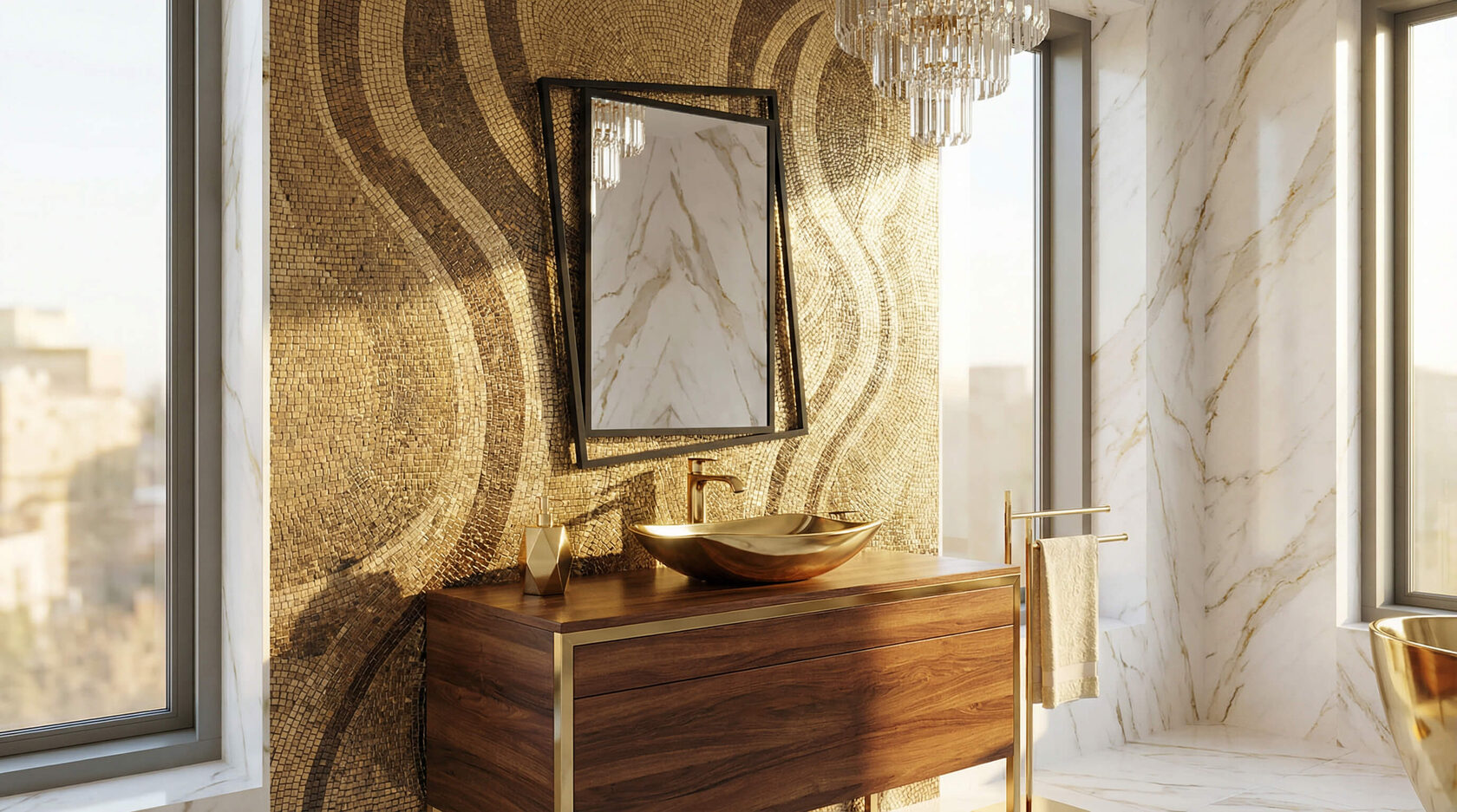 Зеркальная полировка или покрытие нитридом титана. Строгая вертикаль и точная геометрия формируют ощущение баланса, глубины и архитектурной собранности.