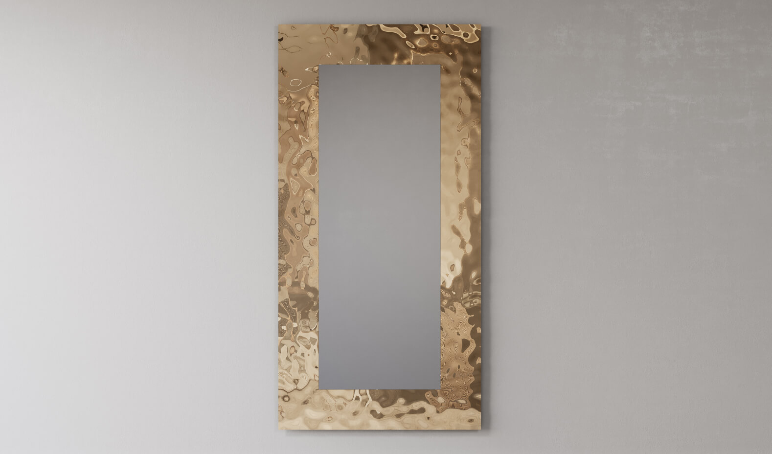 Воплощение выразительной фактуры и художественной архитектурности. Эта модель сочетает чистую зеркальную плоскость и рельефную металлическую раму, создавая эффект глубины и живой игры света на поверхности.